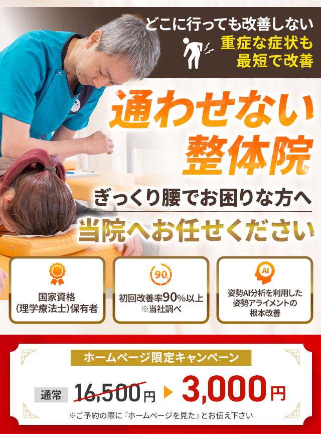 もしあなたがぎっくり腰でお悩みでしたら、お気軽に当院までご相談ください。